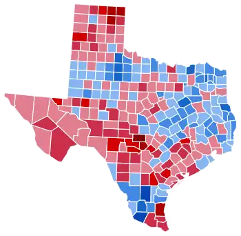 | Van Zandt | 2,279 | 36.74% | 3,911 | 63.05% | 13 | 0.21% | -1,632 | -26.31% | 6,203 |