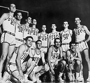 The 1953–54 Duke Blue Devils men's basketball team represented Duke University in the 1953–54 NCAA men's basketball season. The team's head coach was Harold Bradley[1] and the team finished the season with an overall record of 21–6.[2] They won the 1953 Dixie Classic, defeating Navy 98–83 in the final.[3]