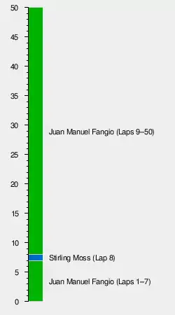 Of the 4 factory Mercedes cars in the race, Fangio and Moss drove the streamlined, closed-wheel W196's, while Kling and Taruffi drove open-wheel W196's. This was the 4th and last appearance of the streamlined Mercedes cars at a championship GP as well as the third and last time in Formula One history that a race had been won by a closed-wheel car.