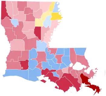 This was the first time ever that a Republican won Allen Parish, Beauregard Parish, Calcasieu Parish, Orleans Parish and Vernon Parish, the first time since 1872 that they carried Catahoula Parish, Jackson Parish, St. Tammany Parish, Tangipahoa Parish and Union Parish, the first since 1876 that they won Morehouse Parish, Natchitoches Parish and Rapides Parish, the first since 1884 that they carried Concordia Parish, the first since 1888 that they won East Baton Rouge Parish and Jefferson Parish, the first since 1892 that the GOP carried Grant Parish and Winn Parish, and the first since 1896 that a Republican won St. Charles Parish.[6]
