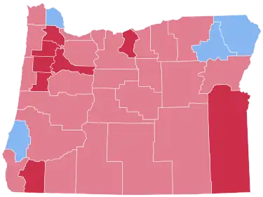 | Yamhill | 8,555 | 61.89% | 5,253 | 38.00% | 14 | 0.10% | 3,302 | 23.89% | 13,822 |