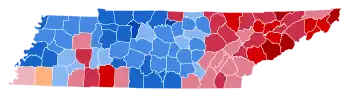 For over a century after the Civil War, Tennessee was divided according to political loyalties established in that war. Unionist regions covering almost all of East Tennessee, Kentucky Pennyroyal-allied Macon County, and the five Western Highland Rim counties of Carroll, Henderson, McNairy, Hardin, and Wayne[4] voted Republican — generally by landslide margins — as they saw the Democratic Party as the "war party" who had forced them into a war they did not wish to fight.[5] Contrariwise, the rest of Middle and West Tennessee who had supported and driven the state's secession was equally fiercely Democratic as it associated the Republicans with Reconstruction.[6] After the disfranchisement of the state's African-American population by a poll tax was largely complete in the 1890s,[7] the Democratic Party was certain of winning statewide elections if united,[8] although unlike the Deep South Republicans would almost always gain thirty to forty percent of the statewide vote from mountain and Highland Rim support.