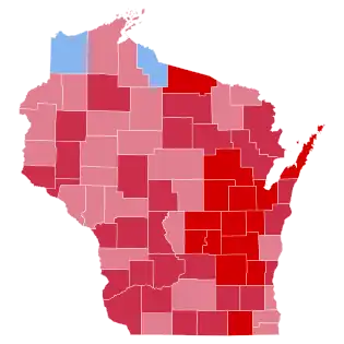 As it turned out, despite the doubts of the Boston Daily Globe Eisenhower slightly improved upon his 1952 margin in Wisconsin: although he did lose some support in the farming areas, he gained upon his 1952 vote in Wisconsin's cities due to increased Catholic support, and carried all but two northern counties. Wisconsin’s result was 8.34% more Republican than the nation-at-large. As of 2020, this remains the last time a Republican has carried Wisconsin by double digits, as the state would trend Democratic beginning with the 1958 midterm elections, although Democrats have subsequently won Wisconsin by double digits just three times – Lyndon B. Johnson in 1964, Bill Clinton in 1996 and Barack Obama in 2008.[18] This is also the last election as of 2020 in which Portage County, Ashland County, Milwaukee County, and Dane County voted for a Republican presidential candidate.[19]