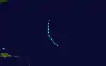 For several days, a weak low pressure area moved across the tropical Atlantic, which organized into a tropical storm on September 1 to the northeast of the Lesser Antilles. That day, peak winds were estimated at 45 mph (72 km/h), based on reports from ships and the Hurricane Hunters. The storm moved northward and weakened. On September 3, the system was absorbed by an approaching cold front. The storm was added to the Atlantic hurricane database in 2016.[6]