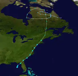 | Brenda | July 27 – 31 | Tropical storm | 70 (110) | 991 | East Coast of the United States, Eastern Canada | $5 million | 1 | [4][14] | ||