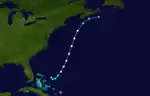 Throughout its duration, Cleo remained a relatively small tropical cyclone. Because the storm posed a significant threat to New England, a "hurricane watch" was issued for southeastern Massachusetts and Rhode Island on August 19. Various gale warnings were also put into effect from Block Island, Rhode Island, to Portland, Maine. However, this was unnecessary because Cleo remained well offshore.[18] On August 19, Cleo peaked with winds of 85 mph (137 km/h), but it weakened to a tropical storm the next day. Cleo curved east-northeastward on August 20, remaining south of Nova Scotia, until it dissipated a day later.[17]