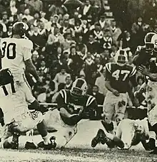The 1961 Cotton Bowl Classic was the 25th edition of the college football bowl game, played at the Cotton Bowl in Dallas, Texas, on Monday, January 2. Part of the 1960–61 bowl game season, it matched two conference champions, the seventh-ranked Arkansas Razorbacks of the Southwest Conference (SWC), and the #10 Duke Blue Devils of the Atlantic Coast Conference (ACC).[2][3] With a late score, underdog Duke won 7–6, in front of 74,000 spectators.[4][5][6][7]