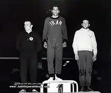 Medal winners of freestyle 79 kg. From left to right, Géza Hollósi, Mansour Mehdizadeh and Hans Antonsson