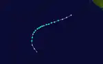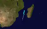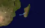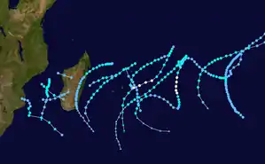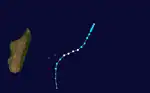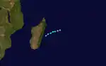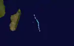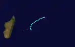 Kathleen existed from February 10 to February 20. Kathleen passed southeast of Rodrigues on February 16, generating high waves that reached 3.5 m (11 ft) along the island's southern coast.[2]