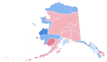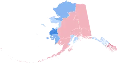 Nixon's 45.28 percent stood 1.86 percent above his national figure and Humphrey’s 42.65 percent a trifling 0.07 percent below his national total.[4] As usual, the Democrats were strongest in the Bering Sea coastal regions: Humphrey obtained a majority of the vote in Bethel Census Area, North Slope Borough, Northwest Arctic Borough and a plurality in Nome Census Area.[5]