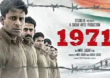 1971 is a 2007 Indian Hindi-language war drama film directed by Amrit Sagar, and written by Piyush Mishra and Amrit Sagar, based on a true story of Indian prisoners of war (POWs) captured by the Pakistan Army during the Indo-Pakistani War of 1971. The film is an account of the attempted escape of six personnel of the Indian Army taken as POWs.[1] The war was preceded by a rebellion in East Pakistan to separate itself from West Pakistan and create a new country, Bangladesh. The film features an ensemble cast of Manoj Bajpayee, Ravi Kishan, Piyush Mishra, Deepak Dobriyal, Manav Kaul and others. At the 55th National Film Awards, it won the National Film Award for Best Feature Film in Hindi[2]