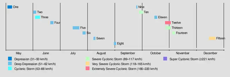 This cyclone was formed on September 27 and peaked as a Category-1 equivalent storm. On September 30, the storm made landfall over Sunderbans and dissipated over the state of Bihar by the next day. 60 people were killed due to the storm.
