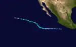 | Katrina | August 8 – 13 | Tropical storm | 65 (100) | 1008 | Mexico | Unknown | 0 | |||