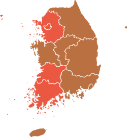 | Jeonnam | 479,737 | (34.4%) | 874,974 | (62.8%) | 31,986 | (2.3%) | 4,362 | (0.3%) | 2,122 | (0.2%) | 1,393,181 | ![]() |