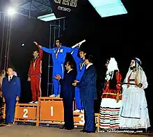 Medal winners of freestyle 57 kg. From left to right, Megdiin Khoilogdorj, Mohsen Farahvashi and Vladimir Yumin
