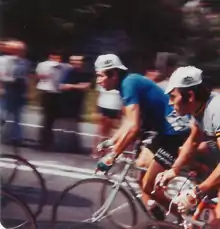 Felice Gimondi and Eddy Merckx in action on the climb of Voie Camillien Houde.