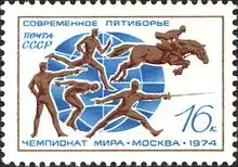 A Soviet stamp dedicated to the 974 World Modern Pentathlon Championships