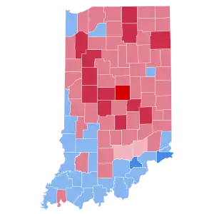 As of the 2020 presidential election, this is the last election in which Dearborn County, Dubois County, Martin County, Ohio County, and Owen County voted for a Democratic presidential candidate,[4] and the last in which St. Joseph County did not vote for the national popular vote winner. This also remains the last time that Indiana has voted for a different candidate than North Carolina in a presidential election.