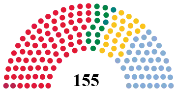 All 155 seats in the Storting 78 seats needed for a majority | |||||||||||||||||||||||||||||||||||||||||||||||||||||||||||||||||||||
