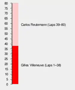Reutemann cruised to the finish, maintaining a twelve to fifteen second gap over Andretti, who had a similar cushion over Patrick Depailler in third.