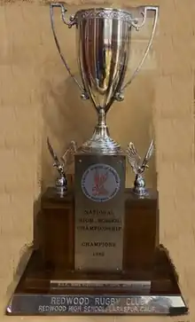 The 1982 National High School Rugby Championship took place in Palo Alto, California at Stanford University's Harry Maloney Field from May 14–15.[9] Redwood High of Larkspur, CA repeated as champions after defeating Highland of Utah in the final.[10]