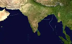 The 1983 North Indian Ocean cyclone season was part of the annual cycle of tropical cyclone formation. The season has no official bounds but cyclones tend to form between April and December. These dates conventionally delimit the period of each year when most tropical cyclones form in the northern Indian Ocean. There are two main seas in the North Indian Ocean—the Bay of Bengal to the east of the Indian subcontinent and the Arabian Sea to the west of India. The official Regional Specialized Meteorological Centre in this basin is the India Meteorological Department (IMD), while the Joint Typhoon Warning Center (JTWC) releases unofficial advisories. An average of five tropical cyclones form in the North Indian Ocean every season with peaks in May and November.[1] Cyclones occurring between the meridians 45°E and 100°E are included in the season by the IMD.[2]