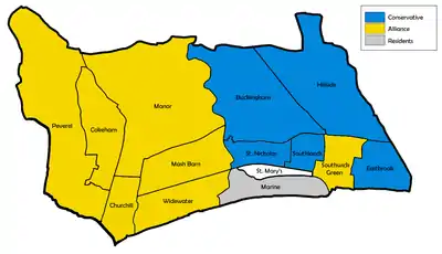 ![]() Map showing the results of the 1984 Adur council elections. | |||||||||||||||||