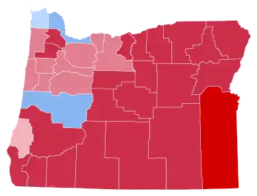 Oregon weighed in for this election as 3% more Democratic than the national average. To date, it is the last time Oregon has voted for a Republican in a presidential election, and also the last time Lincoln County, Benton County and Hood River County have voted for a Republican presidential nominee. It also marks the last time any presidential candidate won Oregon while carrying the majority of its counties.[2]