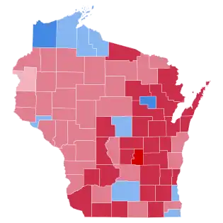 Reagan posted strong wins along the whole of eastern Wisconsin, apart from Manitowoc, Sheboygan, and Racine Counties, and the two Mondale wins in Milwaukee and Kenosha. He posted a particularly strong win in suburban Waukesha County, which he won by over thirty points. In western Wisconsin, Reagan won most of the counties but his margins tended to be weaker. Wisconsin weighed in for this election as 10 points more Democratic than the national average. As of the 2020 presidential election, this is the last election in which Eau Claire County, La Crosse County, Rock County, and Iowa County voted for a Republican presidential candidate, as well as the last election in which a Republican candidate won more than 40% of the vote in either Dane County or Milwaukee County, both of which have voted Democratic in increasingly large margins since.[1] Adams, Crawford, Dunn, Jackson, Trempealeau, Vernon, and Buffalo counties would not vote Republican again until 2016.