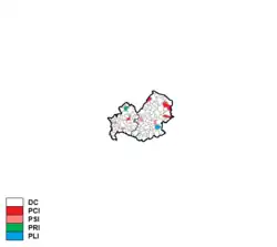 Christian Democracy was by far the largest party, gaining more than three times the share of vote of the Italian Communist Party, which came distantly second.