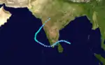 The eighth and final storm of the season formed on December 17 northeast of Sri Lanka. It moved westward, and executed an elongated loop lasting 4 days. It briefly reached tropical storm strength before vertical shear weakened it again, and the system hit eastern India on the 23rd.