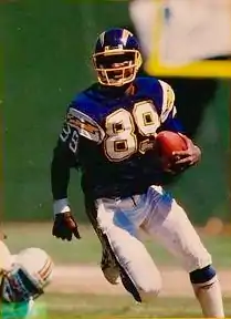 The Chargers quickly trimmed their list of non-union players once the regulars returned. On 20 October, they cut 35 replacement players, retaining 19 on their active roster and three more on injured reserve.[93] A further seven were waived the following week, together with four members of the pre-strike squad, as NFL teams were given increasingly tight squad limits to meet.[94] By 14 November, the pre-strike limit of 45 players had been restored, with nine replacement Chargers remaining.[95] Patterson won a starting role in 1987,[96] and remained with the team through the 1989 season,[97] while Les Miller and Joe Phillips both started games for the Chargers as late as 1990.[98][99]