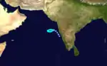 A tropical depression that formed on June 8 off the western coast of India tracked westward, becoming a tropical storm on the 9th. It looped to the north, where upper-level winds ripped it apart on the 12th.