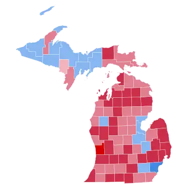 Michigan weighed in for this election as 0.1% more Republican than the national average. This election marks the last time a Republican carried Michigan with a majority of the vote. It was the last time a Republican presidential candidate won the state until Donald Trump's plurality win in 2016.