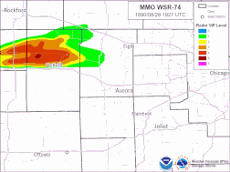 The 1990 Plainfield tornado was a devastating tornado that occurred on the afternoon of Tuesday, August 28, 1990. The violent tornado killed 29 people and injured 353.[1] It is the only F5/EF5 rated tornado ever recorded in August in the United States, and the only F5 tornado to strike the Chicago area.[1][2] There are no known videos or photographs of the tornado itself; however, in 2011, a video surfaced online showing the supercell that spawned the tornado.[3] The Plainfield tornado was part of a small outbreak that produced several tornadoes in the Northern United States and Ontario and Kansas.
