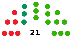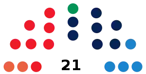 The following table lists party control in the Island Cabildos.[1] Gains for a party are displayed with the cell's background shaded in that party's colour.