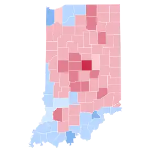 | Vanderburgh | 30,271 | 39.39% | 33,799 | 43.99% | 12,513 | 16.28% | 257 | 0.33% | -3,528 | -4.59% | 76,840 |