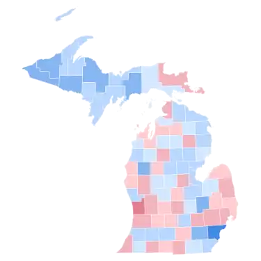 As of the 2020 presidential election, this is the last time that Oakland County voted for a Republican presidential candidate and the last time that Charlevoix County voted for a Democratic presidential candidate.[4] Michigan voted most similarly to the national results of the election.