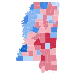 Despite the fact that Clinton was a Southern Democrat, the state remained reliably Republican as the party held two senate seats. While Clinton did manage to win a few other Southern States, Mississippi provided Bush with his highest vote percentage in the nation, which was the closest he came to winning an absolute majority in a state.[2] (However, it was only his sixth-best state in margin of victory.) It was Ross Perot's weakest state, and the only one where he failed to win more than 10% of the vote. He only did worse in the District of Columbia. As of the 2020 presidential election, this is the last election in which Hinds County voted for a Republican presidential candidate and the last election in which Tishomingo County voted for a Democratic presidential candidate.[3]