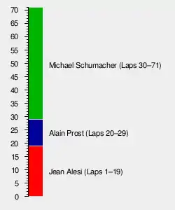 | 1 | 5 | Benetton-Ford | 71 | 1:32:46.309 | 6 | 10 | |