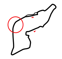 As Ratzenberger's Simtek racer accelerated past 300 km/h for the first time since he went off on the previous lap, the front wing gave way to the air pressure (most likely due to failure of two bolts attaching the wing to the nose's underside) and snapped off. It went under the car where it was wedged, thus lifting the front wheels off the asphalt. Raztenberger could neither steer the car nor brake more than superficially with the rear wheels. Completely out of control, the car went straight ahead in the Villeneuve corner at a speed of 314 km/h (195 mph).[17][18] There were no tyre barriers or any other impact absorbing installations in place at the Villeneuve curva, and the Simtek hit the bare concrete wall with a resulting g-force measured to be 500 g, the highest ever registered in F1.[19][20]