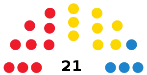 The following table lists party control in the Island Cabildos.[1] Gains for a party are displayed with the cell's background shaded in that party's colour.