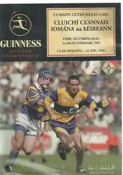 The 1997 All-Ireland Senior Hurling Championship Final was held on 14 September 1997 and contested between Clare and Tipperary. It was a historic occasion in the history of the championship as it was the first time that two counties from the same province were appearing in the championship decider. Both sides had already met during the year in the Munster final when Clare defeated Tipperary. Clare had last won the All-Ireland title two years earlier in 1995 when they defeated Offaly while Tipperary last claimed the championship title in 1991 when they beat Kilkenny.[1]