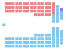 Last election 77 seats, 44.75% 47 seats, 44.40% 1 seat, 6.46%