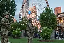 The regiment returned from World War II at the Boston port of entry on 11 July 1945 and then moved to Fort Leonard Wood, Missouri, where it was inactivated on 20 October 1945.[3] In September 1946, the 121st Infantry Regiment was assigned to the 48th Infantry Division, a national guard division headquartered in Jacksonville, Florida. In 1955, this division became the 48th Armored Division and moved its headquarters to Macon, Georgia. As a result of this reorganization, the 121st Infantry Regiment ceased to exist as a tactical organization. Some elements of the 121st Infantry were transferred to the 162nd Tank Battalion in May 1956.[4][5] As the army adopted the Pentomic structure in the late 1950s, infantry regiments were broken up and the component battalions reassigned to brigade headquarters while still retaining the number of their former regiment in their titles. Thus, while the 121st Infantry has not existed as a separate tactical organization since the mid-1950s, some Georgia National Guard battalions, such as 2nd Battalion, 121st Infantry Regiment are still affiliated with the regiment, but assigned to brigades such as the 48th Infantry Brigade for purposes of tactical organization.