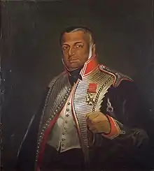 After the Anglo-Maratha War of 1803, James Skinner ("Sikander Sahib") was dismissed from service by Daulat Rao Sindhia and was recruited by Lord Lake, who asked him to raise a regiment of 'Irregular Cavalry'. On February 23, 1803 the regiment was raised at Hansi, Haryana in the service of the East India Company.[6] The initial contingent consisted of 800 men of Perron's Horse, who were under service of the Scindia,[7][8] all of whom were old Muslims comrades of James Skinner.[9] Skinner was one of a certain group of officers, such as Gardner and Hearsay, who had become British leaders of irregular cavalry that preserved the traditions of cavalry of the Mughal empire, which had a political purpose because it absorbed pockets of cavalrymen who might otherwise become disaffected plunderers.[10] Herber writes: "Altogether the dress, arms and appearance would lead any one versed in Indian history to believe Skinner's Horse to be the descendants of the conquering Moguls of Timour."[11]