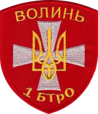 The 1st Independent Motorized Infantry Battalion was a formation of the Ukrainian Ground Forces. Initially created as the 1st Ukrainian territorial defense battalion «Volyn» drawn from residents of Lutsk and Volyn oblast, the creation of the Battalion was announced 31 May 2014, following the outbreak of the Russo-Ukrainian War,[1] and training began on 10 June 2014 in the city of Volodymyr in Volyn Oblast.[2]