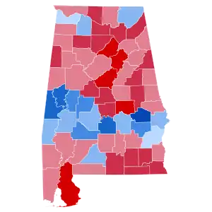 | Tuscaloosa | 34,003 | 56.56% | 24,614 | 40.95% | 1,497 | 2.49% | 2,461 | 15.61% | 60,114 |