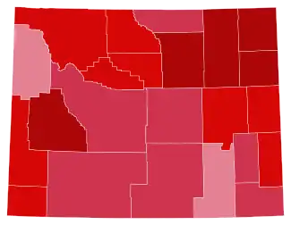 Wyoming was won by incumbent Texas Governor George W. Bush by a massive 40.06% margin of victory, and his 67.76% of the popular vote made the state his strongest victory in the 2000 election.[1] He was accompanied on the Republican ticket by vice presidential nominee Dick Cheney, formerly a member of the U.S. House of Representatives from Wyoming's at-large district. As of the 2020 presidential election, this is the last time a Republican won Teton County, and thus is also the last time a nominee of any party carried every county in the state, even though subsequent Republican nominees such as Donald Trump have exceeded Bush's share of the overall vote in Wyoming.
