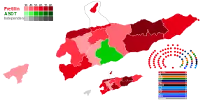 Constituent Assembly elections were held in East Timor on 30 August 2001, the second anniversary of the independence referendum. One member was elected from each of the country's thirteen districts, whilst a further 75 were elected by proportional representation.[1] The result was a victory for Fretilin, which won 55 of the 88 seats. Voter turnout was 93%.[2] Following the election the Constituent Assembly nominated a transitional Council of Ministers with Mari Alkatiri as Chief Minister.[3]
